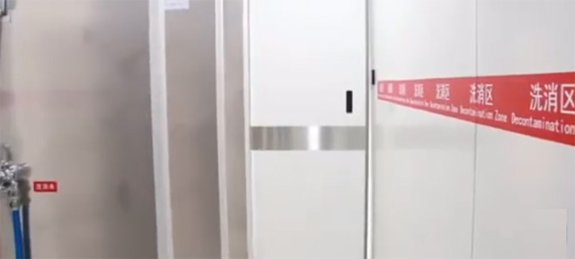 洗消區(qū)共設(shè)有5個洗消位每個洗消位都配備相應(yīng)的洗消設(shè)施、洗消指導(dǎo)標(biāo)識,配備洗消標(biāo)識、花灑清洗液體標(biāo)識。